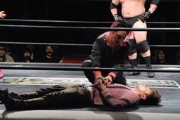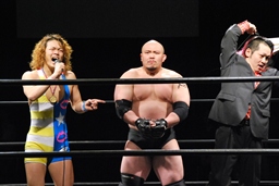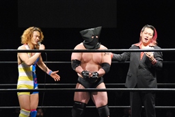 パーフェクト「オーナー!どうですかこの強さ!アメリカじゅうの刑務所を探し回って見つけたんですよ。よかったらこのオカバーグをメインに出場させてくれませんか?」と提案。オーナー悩むがまたも天海秘書の「見たいな〜」のひと声で「決定!」メインは6WAYに。