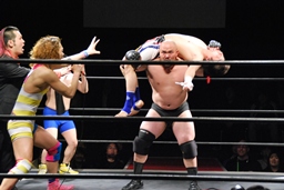 チャレンジャーたち。ユニオンの風戸大智&DDT練習生のカワムラとスズキの計3名(右写真)。