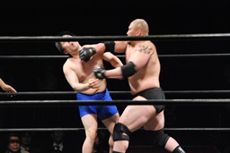 カワムラもチョップ打って行く(右写真)。