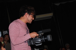 ここで「そんなもんフェイクじゃねえか!」の声が。声の主は南側ひな壇席最上段で撮影していた今成カメラマンであった(左写真)。