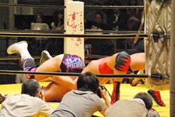 大谷再度フルネルソン、ライディーンはコーナーに下がってブレーク(右写真)。
