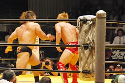 小幡チョップ(左写真)、関本逆水平。関本ストンピング。