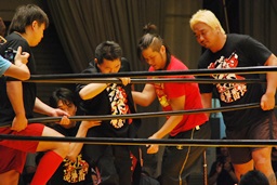 星川が「いくぞー、3、2、1、ZERO1!」で締める(左写真)。星川の入場曲「ハイティーンブギ」が流れ星川退場。