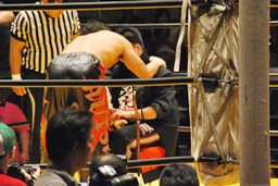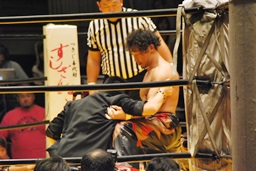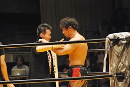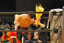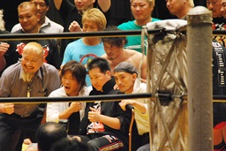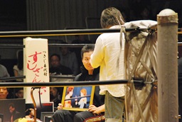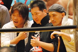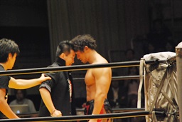 丸藤が声をかける(左写真)。「リングでまた会おう」と言ったらしい。