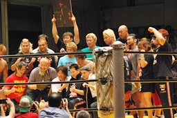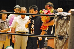 富豪富豪夢路、高橋冬樹らZERO-ONE旗揚げメンバー集結(右写真)。高岩からも花束。