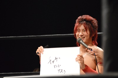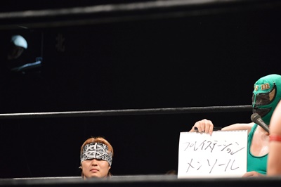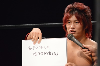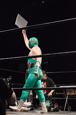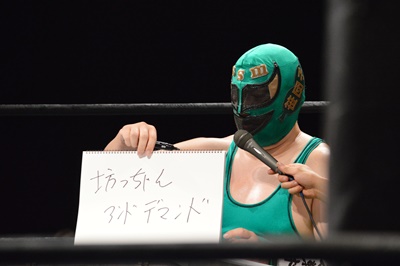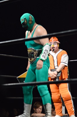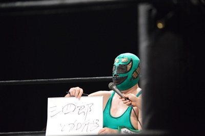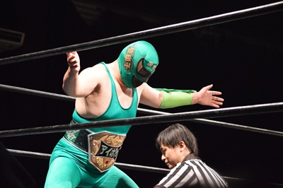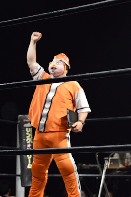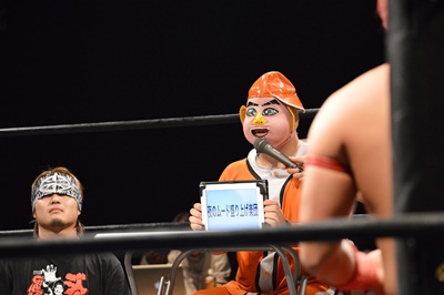 SUPPONグランプリ2014の優勝者は新潟プロレスのスーパーササダンゴマシン!(左写真)