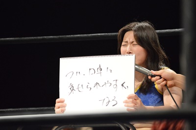 と言っても試合は続行されない。GMが本部席からリングサイドまで来て回答。「人肌に温めて切れ目を入れたほんやくコンニャク」(右写真)。続行。