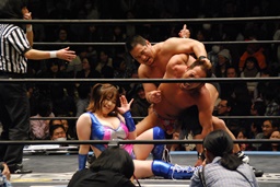 ボインメーカー炸裂!(左写真)高木がカバー、カウント2。