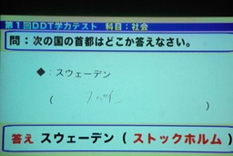 各国の首都を答える問題。平田の解答は、イギリスの首都がパリ(右写真)、