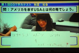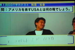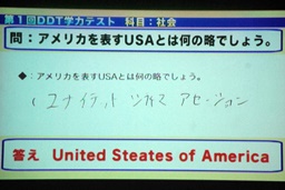 「アメリカを表すUSAとは何の略でしょう」という問題に平田の解答は「ユナイテッド・スーパー・アメリカ」(左写真)。