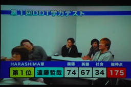 1位はHARASHIMA軍の遠藤175点(左写真)。珍解答として紹介されることもなく、真面目に手堅く得点。