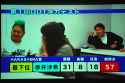 そして最下位はHARASHIMA軍の赤井沙希、57点。平田がずいぶん嬉しそう(右写真)。やはり逸材であったか。