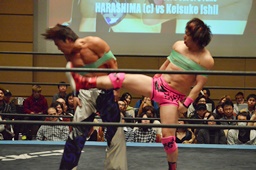 石井ニールキック、HARASHIMAかわす(右写真)。