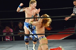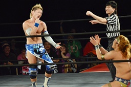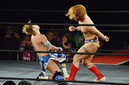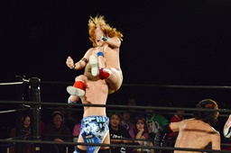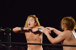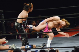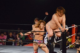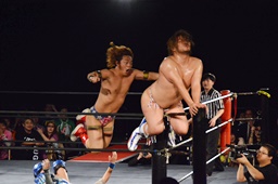 イサミが勇脚・斬、大石エビ固め(左写真)、カウント3。