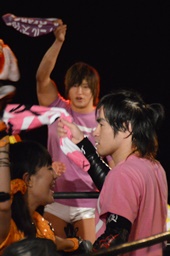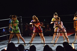 大石「見たか!アップアップガールズ(仮)が最高だろうが!でも、闘ってわかった!ほもいろクローバーZは最高だよ!ケンカし合ってる場合じゃねえだろ。俺たち競い合って、もっともっと上目指していこうぜ。このあとのアプガのライブ、まだまだあるよ。後半戦行くぜ!なあイサ・・いない!早くない?」(右写真)
