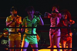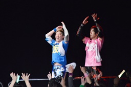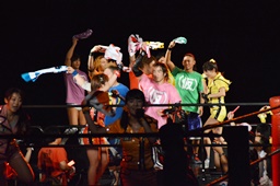 新井「次で最後の曲になります!最後の曲はほもいろクローバーZさんのファンの方、アプガファンのみなさんも関係なしに、みんなで一緒にタオルを回して一つになりましょう!」ということで「アップアップタイフーン」(右写真)。