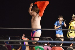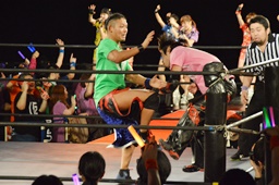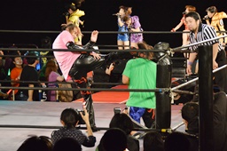 イサミハートパンチ(右写真)、飯伏カウンターから転落。