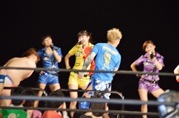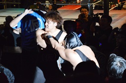 アンコールでアプガが再度の「アッパーカット!」を歌う中、レスラーたちはそれをBGMに新宿FACEのあちらこちらで乱闘開始(右写真)