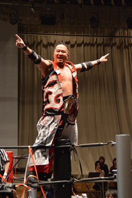 旗揚げメンバーチームの勝利(左写真)。NOSAWAは早々にリングを後に。残ったMIKAMIと佐々木と高井でしばし会話。