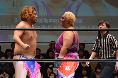 第3試合 男色ディーノ&大石真翔 vs 入江茂弘&アジャ・コング