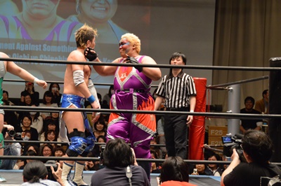 アジャが裏拳(右写真)、ブレーンバスター、
