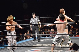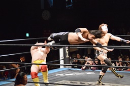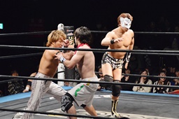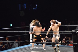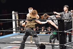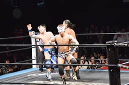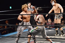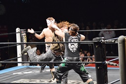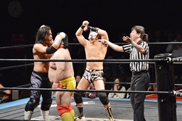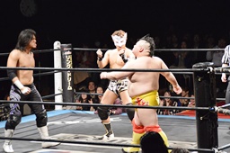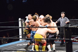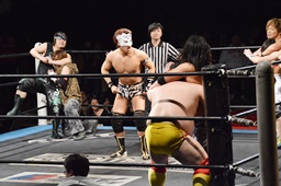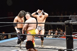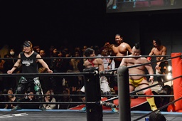 大石が大鷲、ウラノがニラ、MIKAMIがワンチューロ、佐々木が伊橋をヘッドロック(右写真)。