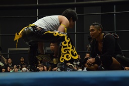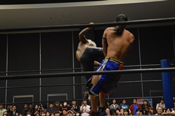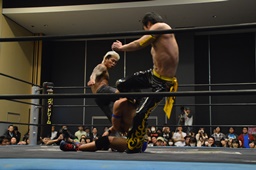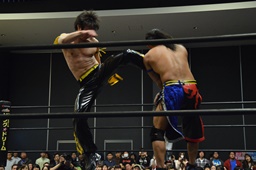 先発は坂口と彰人。坂口ローキック(右写真)。