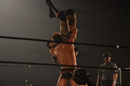 でらHOFバスター(右写真)、カウント2。5分経過。