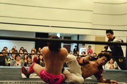 チキンウィングアームロック(右写真)、石井ロープ。