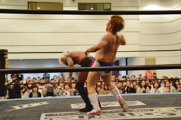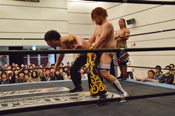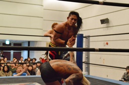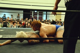 彰人KUDOをコーナーに上げてキン肉大移動狙う(右写真)、