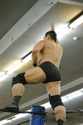 ヤマケンアームロック(右写真)、松永ロープ。高木にタッチ。