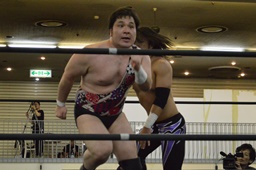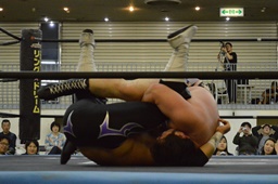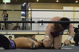 アントンダスティ、佐々木かわして逆さ押さえ込み(左写真)、カウント2。