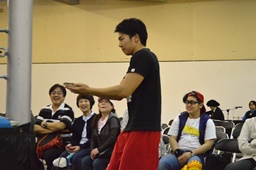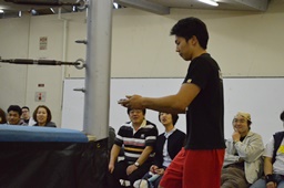 試合続行。ロープワーク(左写真)、佐々木リープフロッグ、