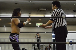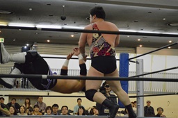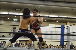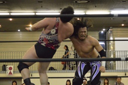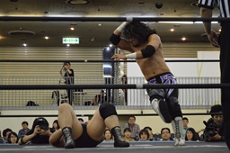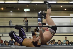 佐々木パンチ、イーブンフローDDT(左写真)、カウント1。