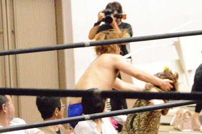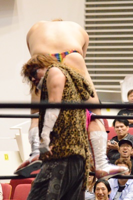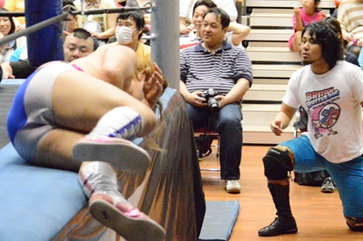 場外カウントなしなので延々と続く場外乱闘(右写真)。