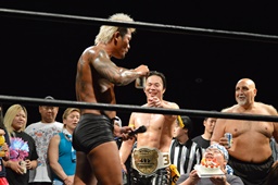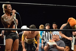 坂口「自分が死ぬのはこのリングの上だと思ってるんで。まずは両国で6人タッグ防衛して、あとユニット総選挙、酒呑童子が1位を取ります!」(右写真)
