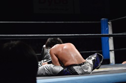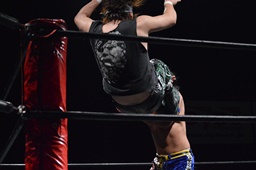 ウラノコーナーに上ってミサイルキック(右写真)。