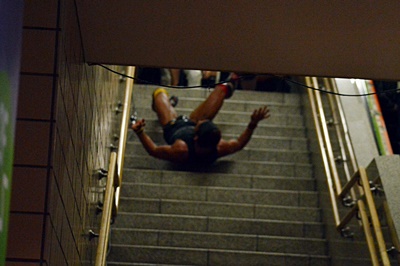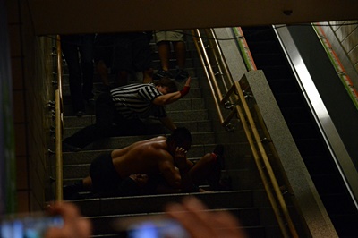 階段下で乱闘(右写真)。この辺りはよく見えない。