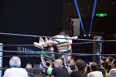 高木がドラマティック・ドリーム号をリングに持ち込む(右写真)。