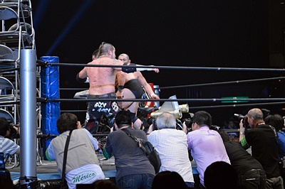 高木がカバー、李日韓レフェリーがカウント(右写真)、マイケル2で返す。