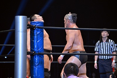 鈴木は葛西のラリアットをかわして(右写真)、