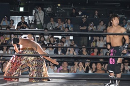 試合前、平田がマグナムマスクを持っていこうとするのを大鷲が止め、「両国のエンディングを飾ったお前にもうこの先があるわけがないだろ!」マスクを落とす平田。その後にやって来た星誕期とアントンがマスクを拾う。「TOKYO GO」で入場した2人は個性的なダンス(右写真)。