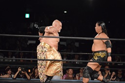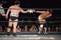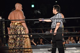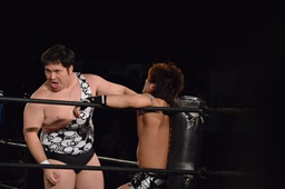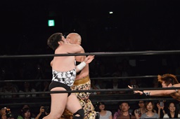 星誕期が勝つ(左写真)。しかし大鷲立ち上がるとビッグブーツ。両軍タッチ。