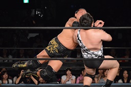 星誕期腕を取る、大鷲ネックスプリングで切り返そうとするが、失敗したところに星誕期ボディプレス(右写真)、アントンにタッチ。
