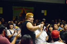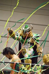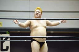 「イェイ!カモン!」からの「どすこいダンシング」で入場する豚ing(右写真)。