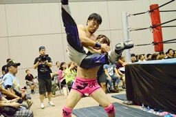 ウラノエルボー連打、入江詰め寄る(右写真)。