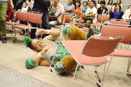 客席に叩き込まれた入江がウラノを追いかけるが(右写真)、