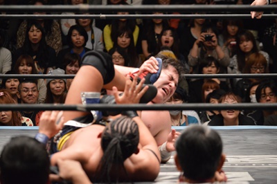 彰人はニークラッシャーでマットに叩き付ける(右写真)。