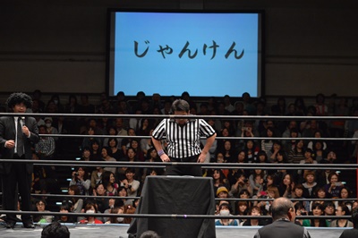 じゃんけんトーナメント出場選手は本日の選抜メンバーから王者HARASHIMA、挑戦者イサミ、2月に挑戦の決まってる飯伏、新日本に移籍するケニーの4人を除いた16人。今回は飯伏は「出たい」と言わなかったか。