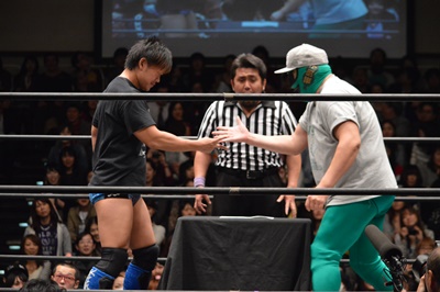 第3試合、マサ高梨vs竹下幸之介(左写真)